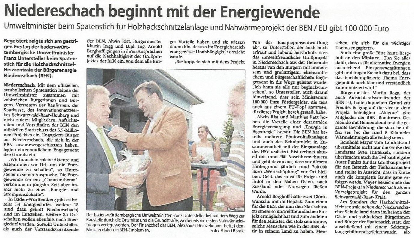 Großer Bahnhof bei der BEN: Umweltminister Franz Untersteller ist beim Spatenstich dabei.