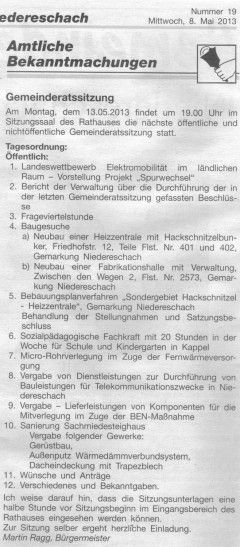 13.05.2013 - Gemeinderatssitzung Bebauungsplanverfahren und Baugesuch